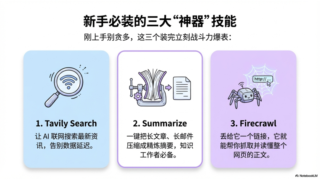 第一天我们可以装几个评分最高的skill,用顺了再加。