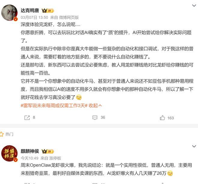 这波龙虾热潮,有人单纯为了体验技术发展,有焦虑害怕自己落后,也有人想搞钱。这是每一波风口热潮来临时的众生相。