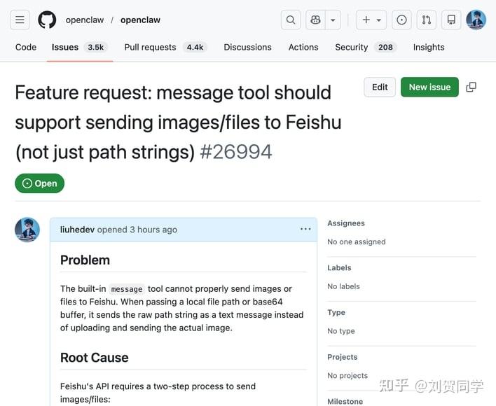 你以为这就结束了? 当然没有。为了不让后人继续踩坑,我把这个问题整理了一下,顺手给 OpenClaw 提了个 Feature Request(#26994):
