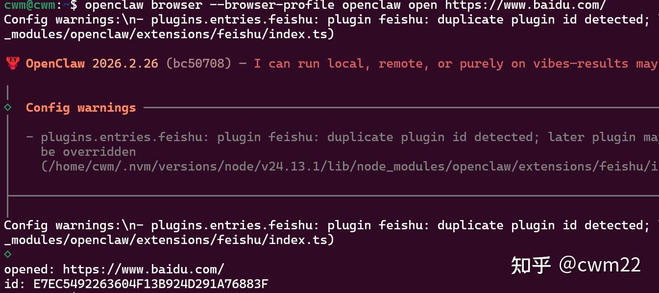 # 打开网站命令 openclaw browser open https://www.baidu.com/