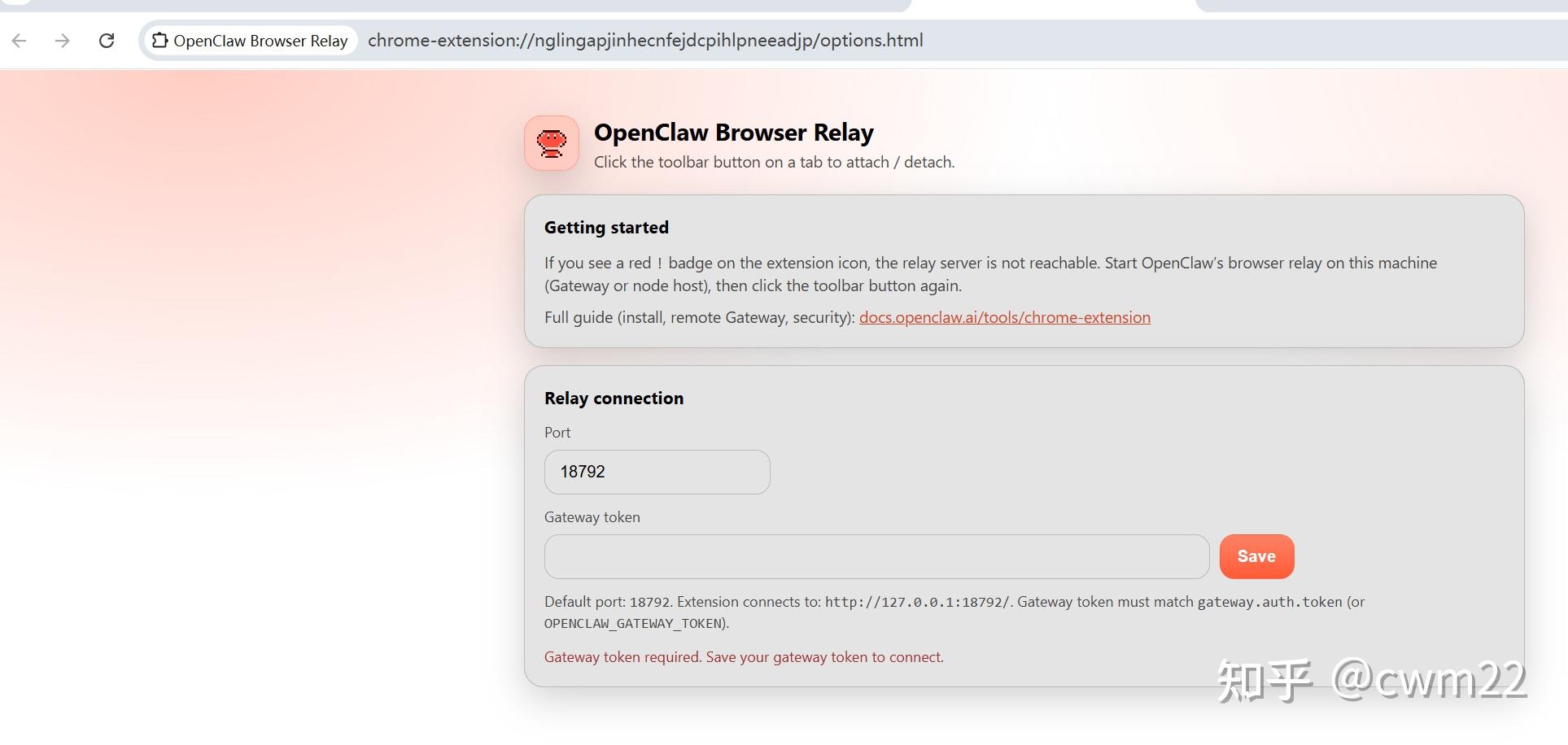 打开后,将openclaw服务web端的Gateway token复制并粘贴到如图4中的Gateway token位置,点击保存即可。