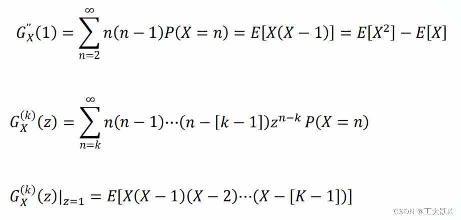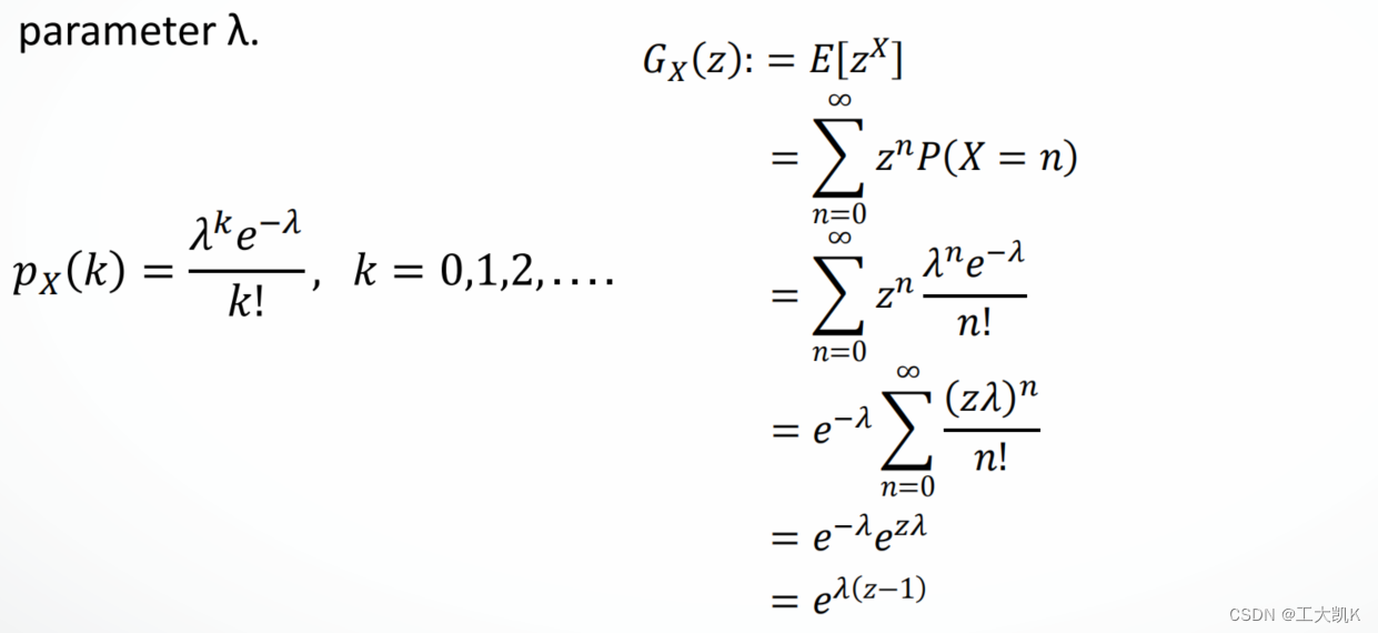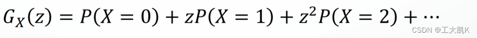 假设X是一个离散型随机变量,只取非负整数值。X的概率生成函数(pgf)为: