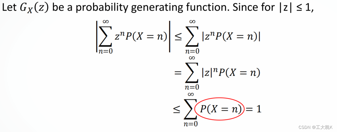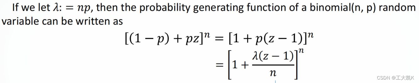 因为我们可以通过概率生成函数恢复概率质量函数(概率分布函数)(使用求导 z=0的方法),所以若两个随机变量的概率生成函数近似的话,可以得出两个随机变量的概率分布也是近似的。