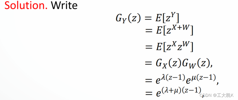 )是相互独立的泊松分布随机变量 Y = X+Y ,求Y的概率生成函数
