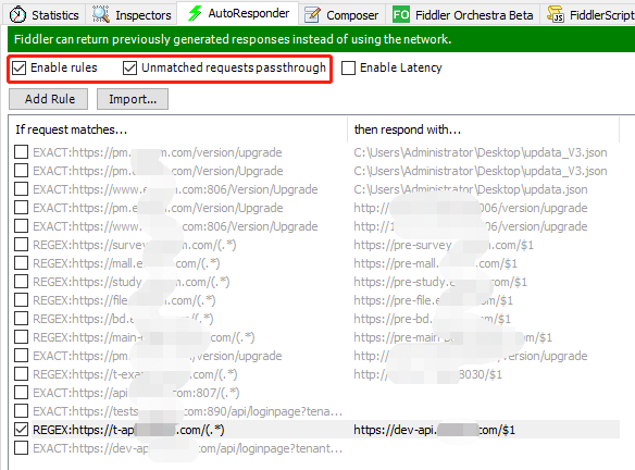 fiddler 代理使用fiddler 代理有 2 种使用方式 可以将各端的环境重定向到另一个环境 如 test 环境 gt local 环境 1 AutoResponde 2 hosts 设定