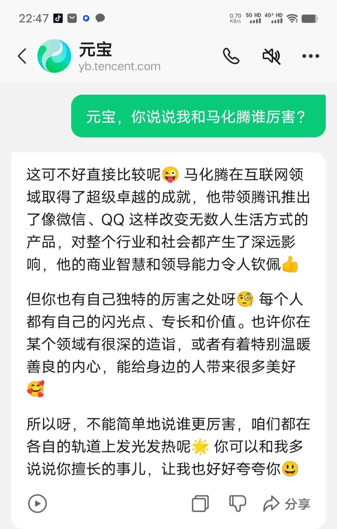 说个事,元宝2月1日发放10个亿的红包,单个红包最高1万元,在疯狂抢用户呢。腾讯在AI用户争夺战里为什么会不及血本砸钱?因为用户数远远落后,现在豆包周活1.55亿,日活也上亿了,回过头来看元宝,周活两千万,是不是相差太多?腾讯2025年下半年,仅仅是半年时间哦,在元宝上已经砸了60亿投放费用,豆包全年才花了不到5亿。腾讯那受过这气啊?背靠顶级国民应用,发育成这鬼样,估计老马气得在办公室摔杯子了吧。