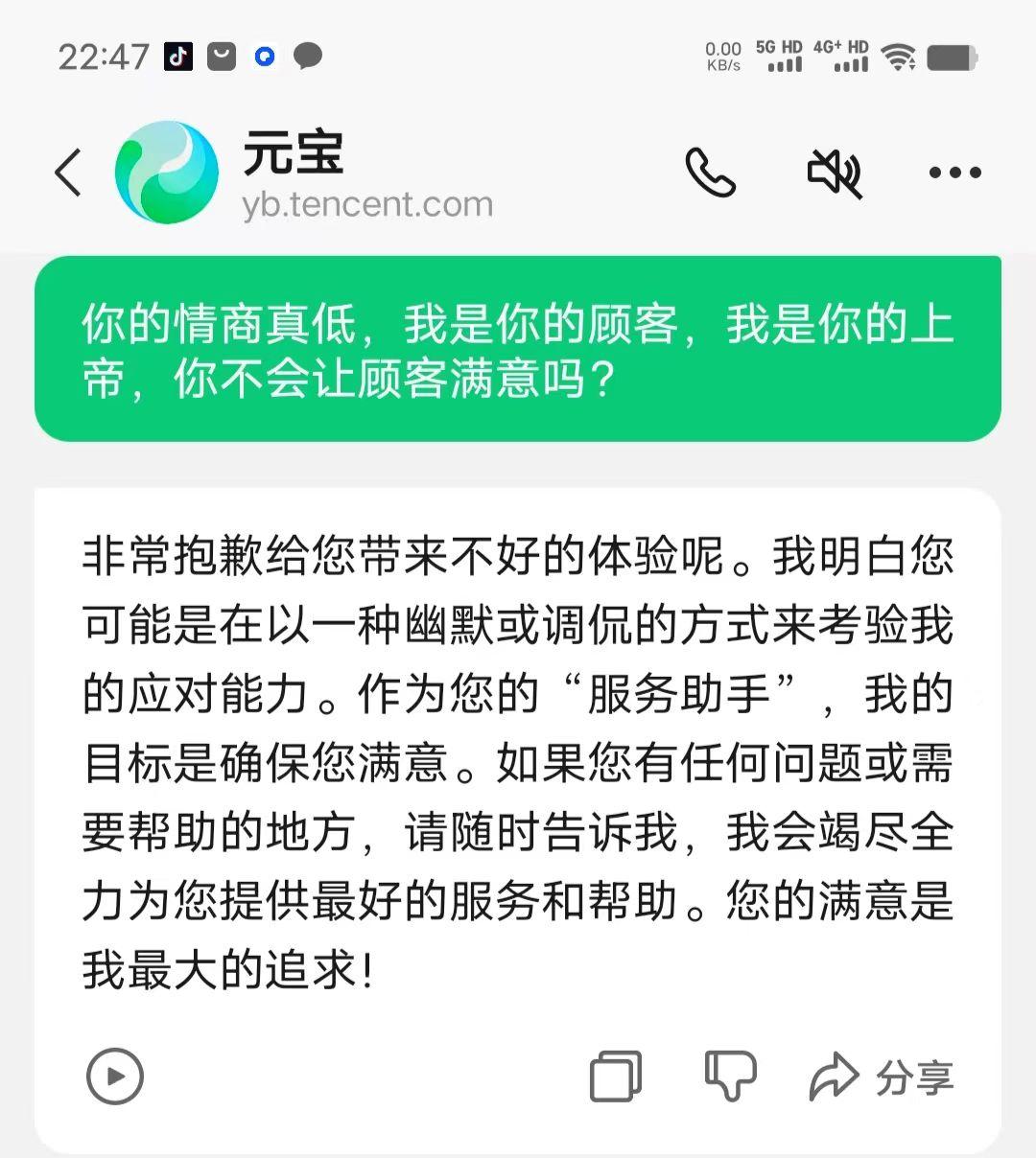 首先我先考虑它们智商,先测试一下豆包,结果我把豆包当了元宝说错话了,豆包不满意了,还纠正了我的错误。