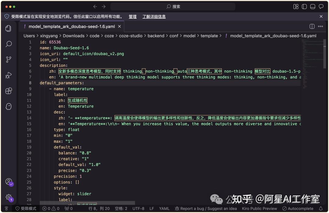打开ark_doubao-seed-1.6.yaml后,你会看到密密麻麻的代码