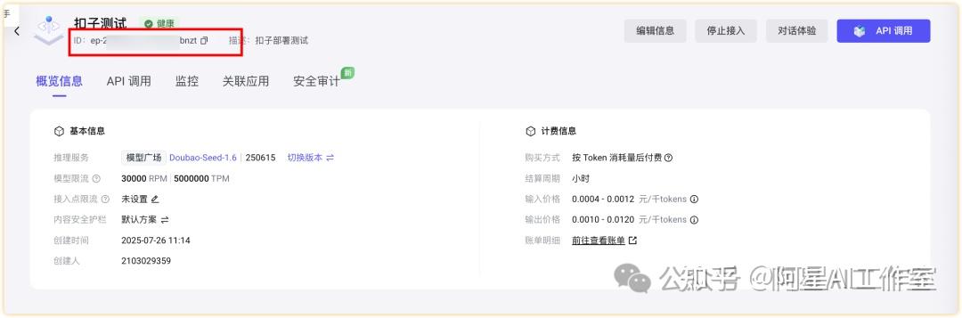 火山方舟 doubao-seed-1.6 模型接入点的 Endpoint ID