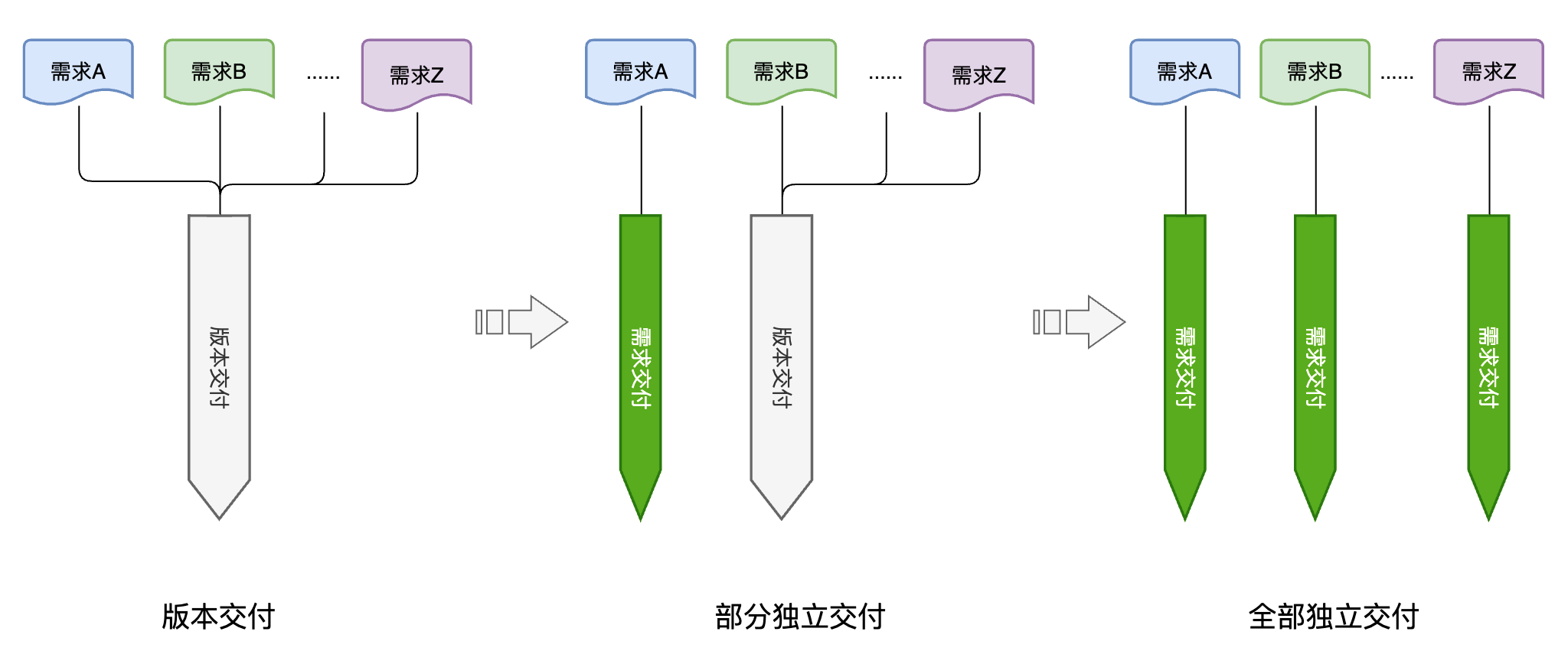 - 需求相互耦合,上线交叉感染。一个版本上线出现问题时,由于上线的内容很多,定位问题就会变得更困难,不能确定是哪个需求的变更引起的问题。