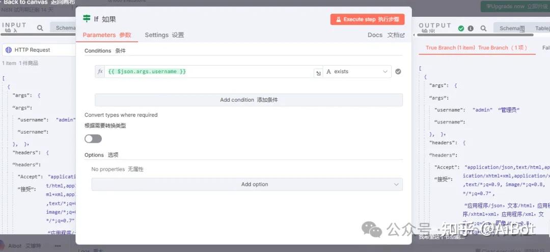 继续添加操作步骤,我们在添加if判断分支,将前面接口请求返回值存在时,为真。