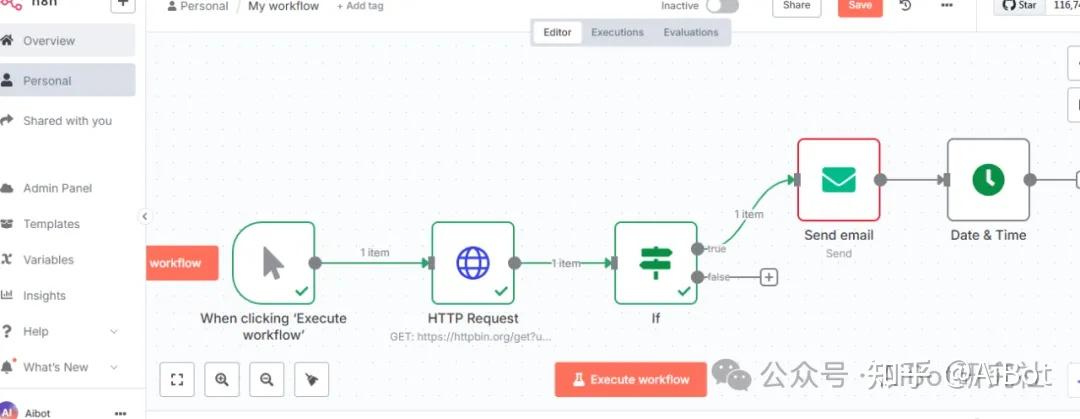 n8n系列教程本文AiBot研究社主要介绍,用n8n创建第一个基础Ai工作流教程。用我们之前本地搭部署好的n8n实现一个基础AI自动化工作流。为了中英文好对照,下面的n8n工作流教程中用3个实操案例(接入deepseek、接入OpenAI、通过接口实现自动发邮件)来说明。这样新人更容易了解n8n的节点 (Nodes)、连接 (Connections)、工作流 (Workflows)3个板块。这里先简单文字说下易于理解: