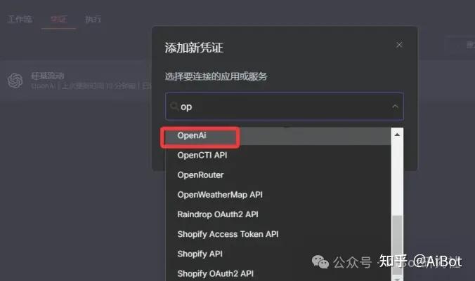 先配置好模型证书密钥,添加好相应的凭证,这里我们搜索OpenAi。