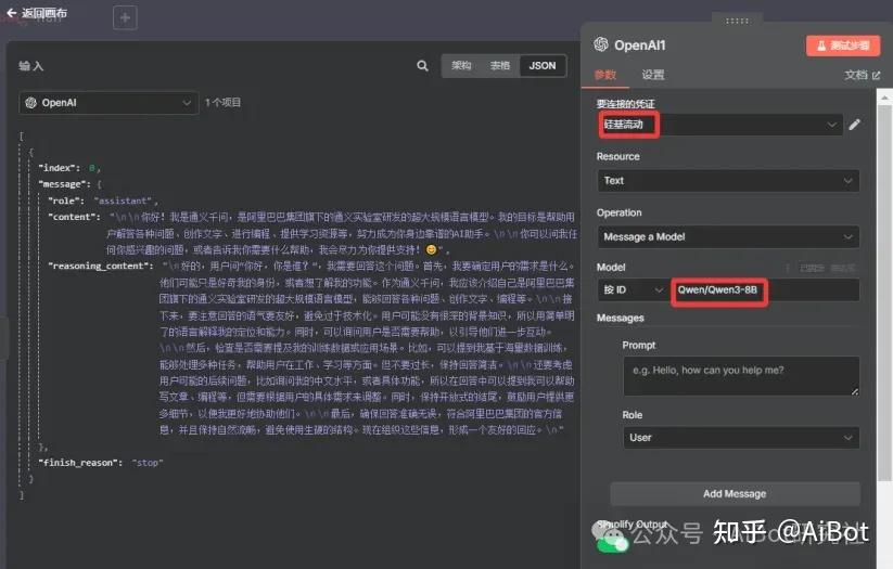 确认收到有效响应即验证成功,到这里使用n8n创建第一个基础Ai工作流已经完成了。