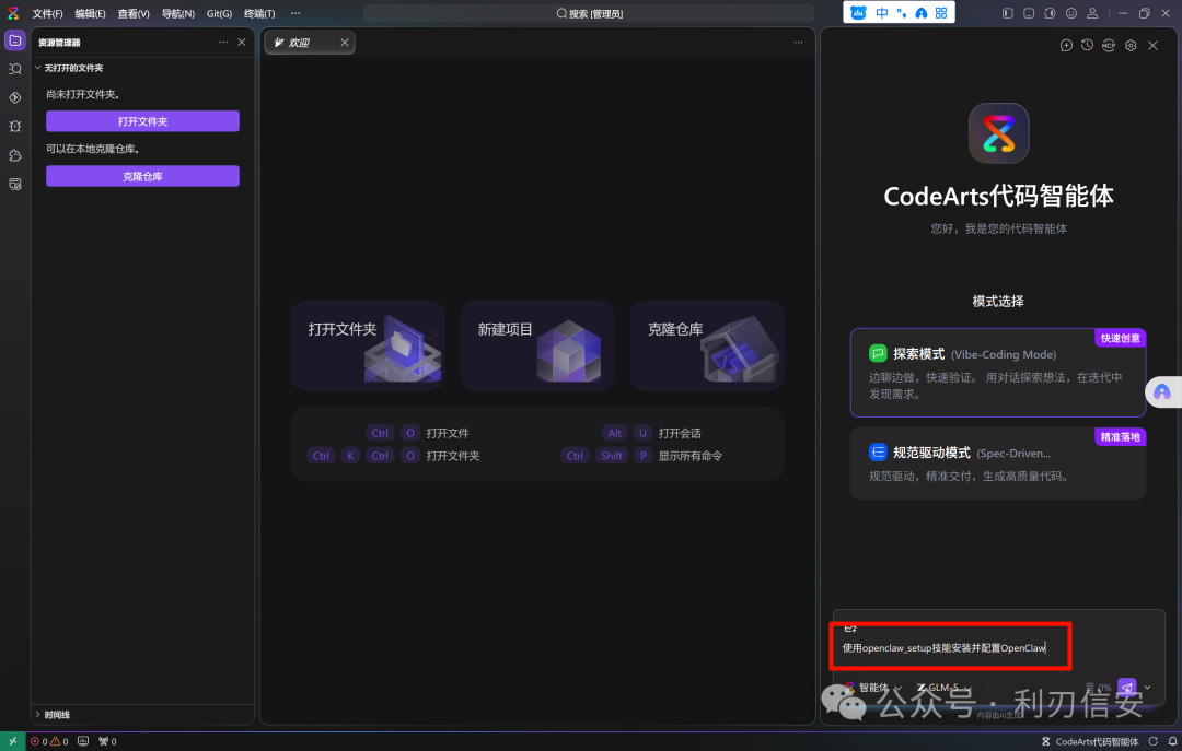 利刃信安《【人工智能】在线养虾模式开启,用华为云码道(CodeArts)代码智能体Skill快速安装OpenClaw》