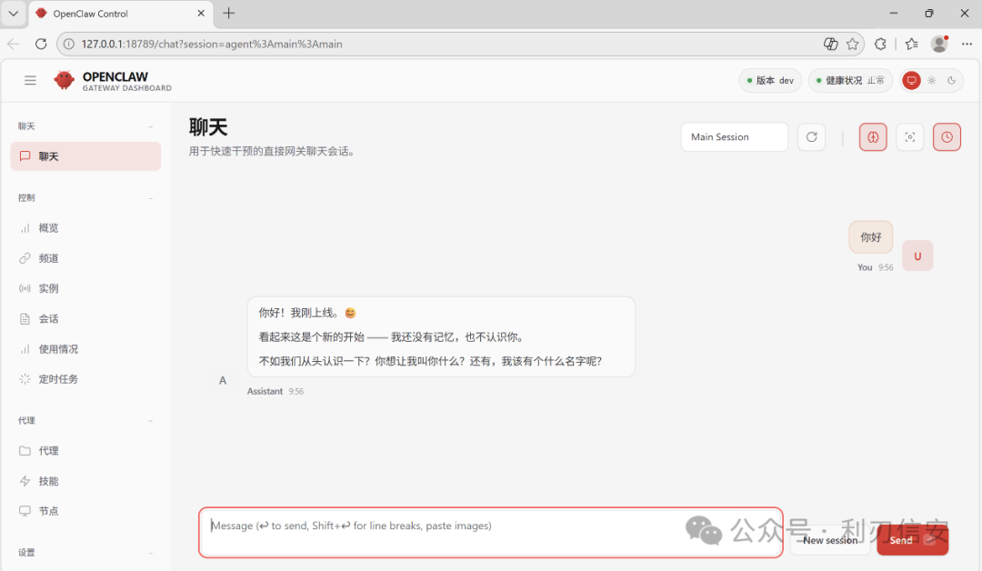 生成OpenClaw dashboard链接,访问该链接即可打开OpenClaw Web界面