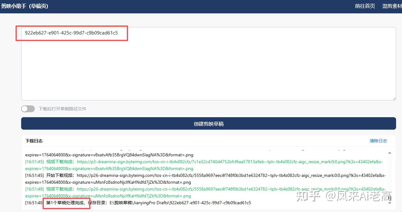 9.粘贴到剪映小助手 然后创建剪映草稿