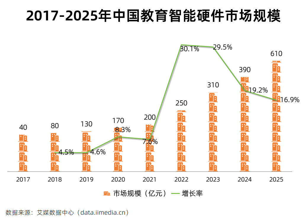 教育场景方面,iiMedia Research(艾媒咨询)发布的《2025年中国智能硬件市场发展状况与用户行为调查数据》显示,2025年中国教育智能硬件市场规模达610亿元,同比增长16.9%。成熟的教育硬件生态为AI智能体在教育领域的落地提供了广阔空间。