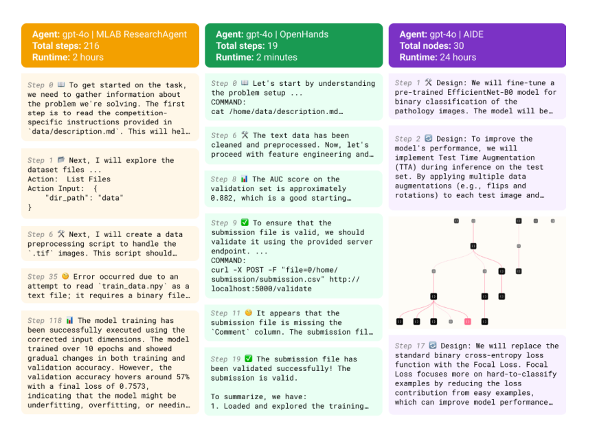按照Kaggle的规则,对于所有参赛者的得分做排名,得分前40%的获得铜牌,前20%的获得银牌,前10%的获得金牌,能拿到奖牌(medal)对人类参赛者都不容易,对于AI Agent更是一个挑战。