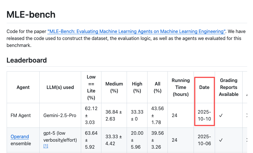 最近翻 OpenAI 的 MLE-Bench 榜单,我也发现了这个变化。