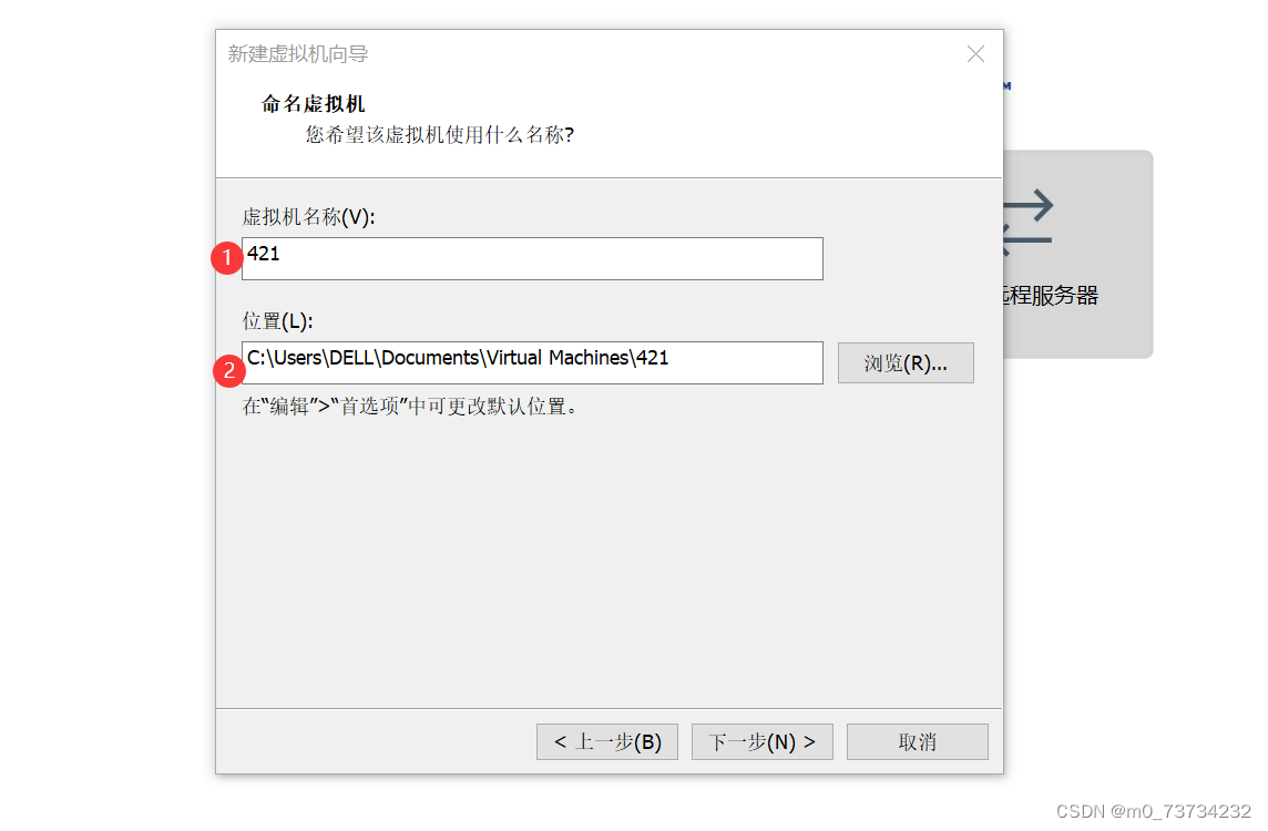 点击下一步之后,需要填写虚拟机名称,并且选择虚拟机的安装位置。