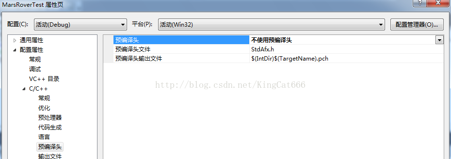 (2)一般可以设置为不使用预编译头文件。注:忘记修改不使用预编译头文件的话,可以在“属性-配置属性-C/C++-预编译头”选项中修改。