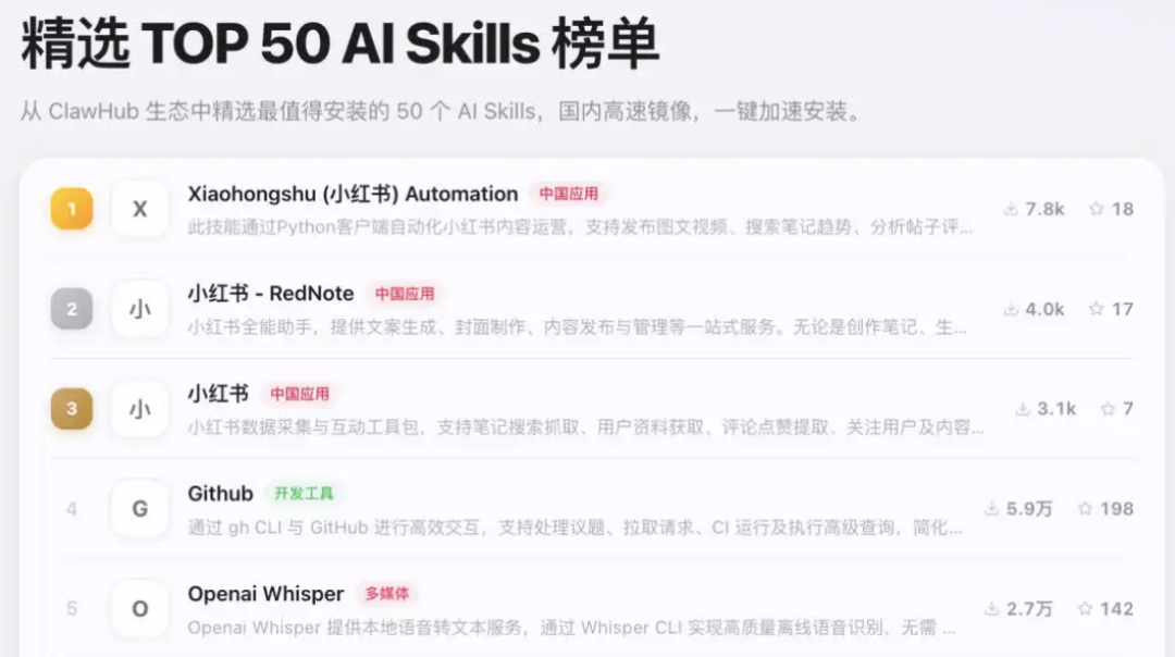 其中排名靠前的几个也能侧面说明大家部署龙虾都在做什么。