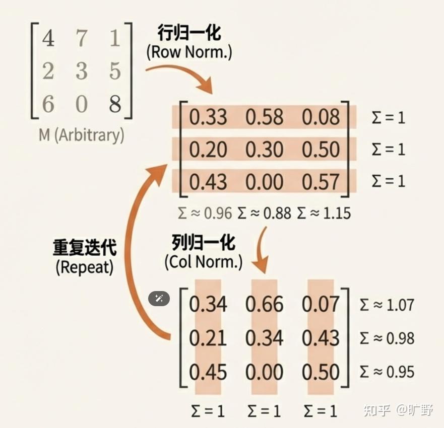 这就涉及到一个经典的算法:Sinkhorn-Knopp 迭代。