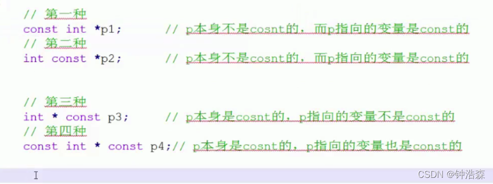 p与*p是两个变量,因此const修饰可能会理解错误,常见如下: