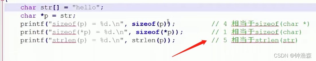 (1)char *p = str; sizeof(p)得到的永远是4,因为这时候sizeof测的是字符指针p本身的长度,和字符串的长度是无关的。