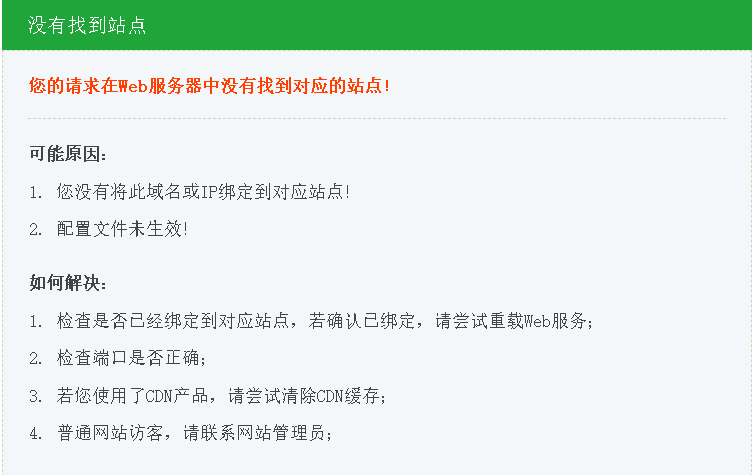 当我们在安装好nginx准备访问80端口时,突然出现您的请求在Web服务器中没有找到对应的站点。这时就纳闷了,明明跟着步骤一步步进行安装的,怎么就访问不到呢。
