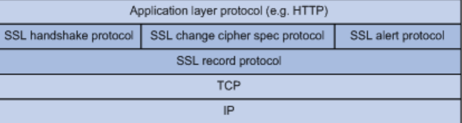 SSL记录协议:主要负责对上层的数据(SSL握手协议、SSL密码变化协议、SSL警告协议和应用层协议报文)进行分块、计算并添加MAC值、加密,并把处理后的记录块传输给对端。