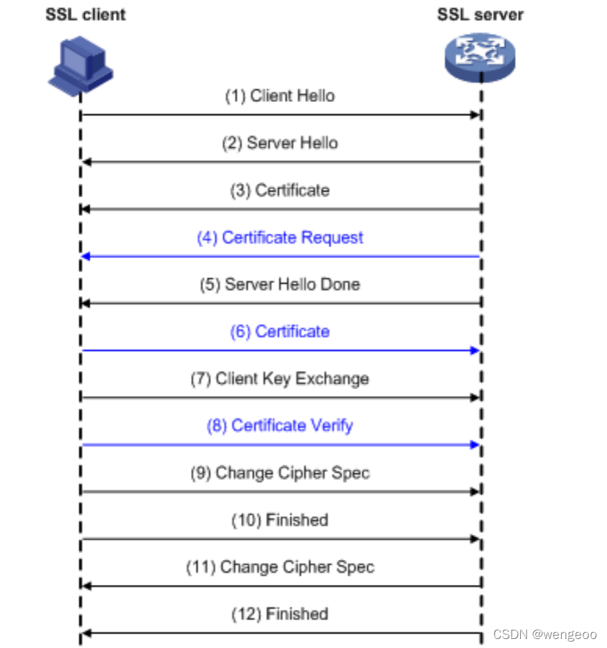 (1) SSL服务器发送Certificate Request消息,请求SSL客户端将其证书发送给SSL服务器。