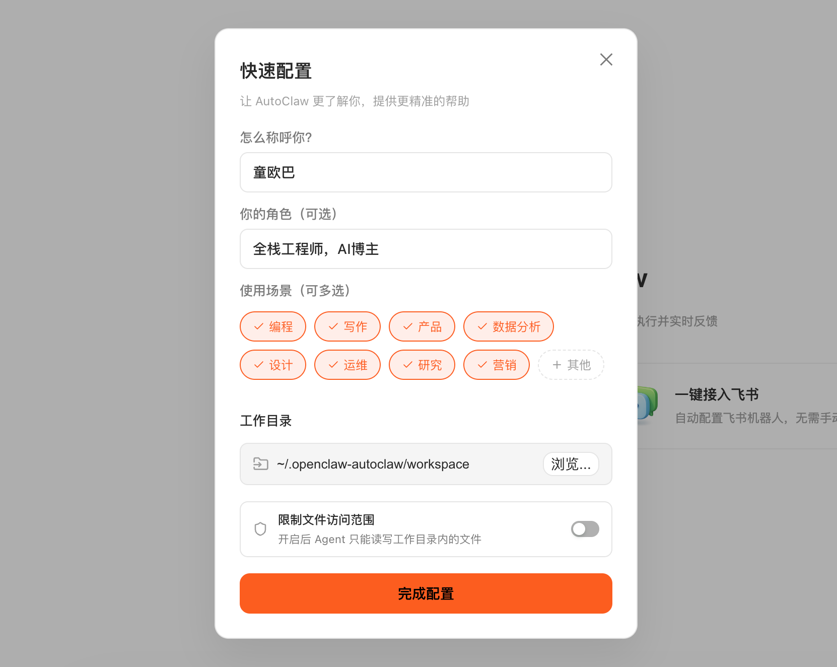 目的是让 AutoClaw 更了解你,好提供更精准的服务和帮助。