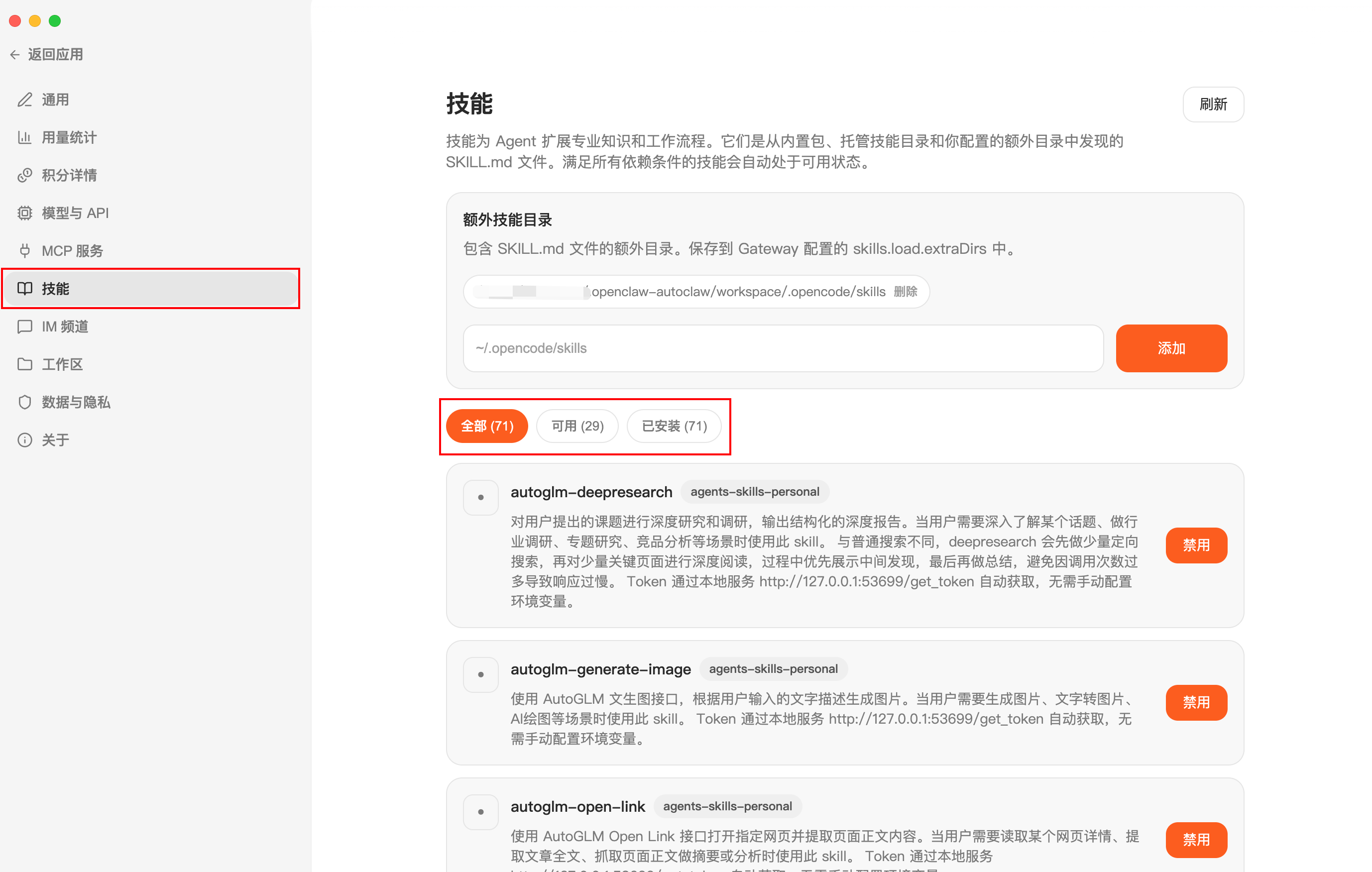 AutoClaw完整继承了OpenClaw的Skill体系,50+预制技能开箱即用。