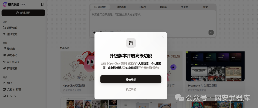 第一步:进入扣子平台并升级账号