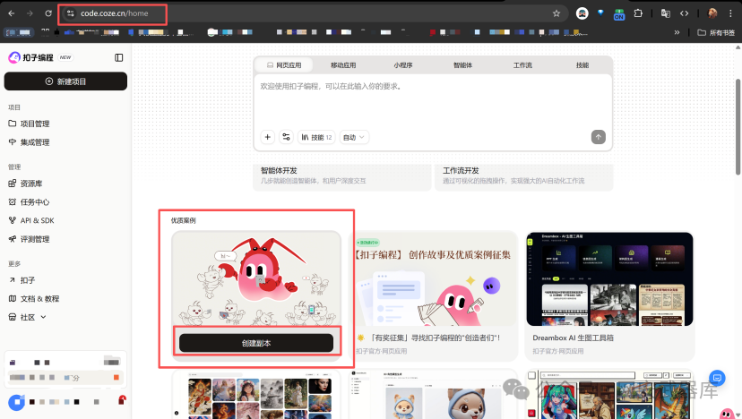 访问 扣子(Coze)编程平台官网