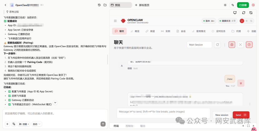 文章总结: 本文介绍了开源AI智能体网关OpenClaw的特点及扣子平台云部署教程。OpenClaw支持本地存储和多渠道操控,保障隐私安全。文章详细阐述了在扣子平台一键部署OpenClaw并接入飞书实现AI自动办公的完整流程,涵盖账号升级、应用创建、权限配置、事件订阅及配对授权等关键步骤,旨在帮助用户低成本快速搭建自动化办公环境。 综合评分: 78 文章分类: 安全工具,实战经验,办公安全
