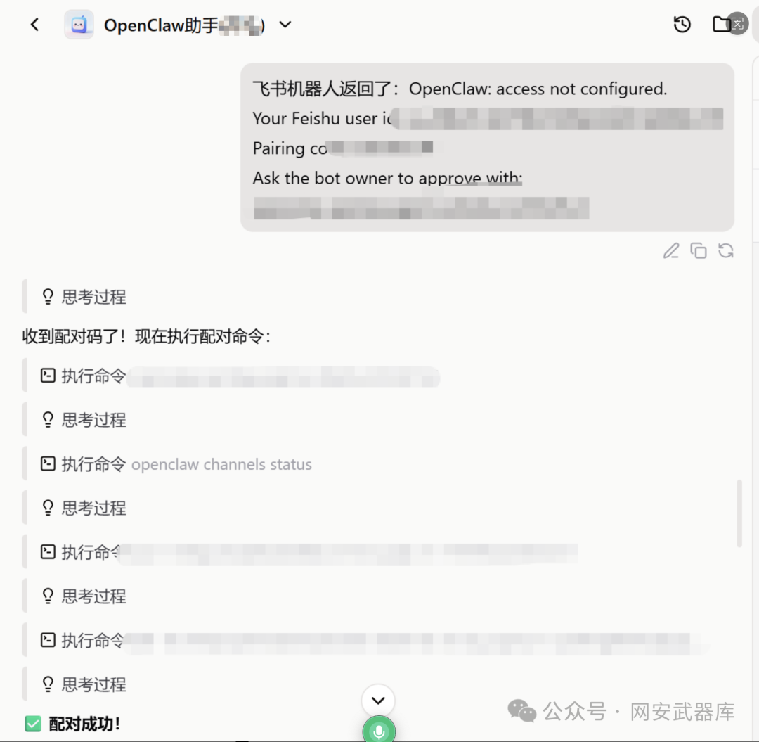 将配对码提供open claw,完成配对命令完成授权