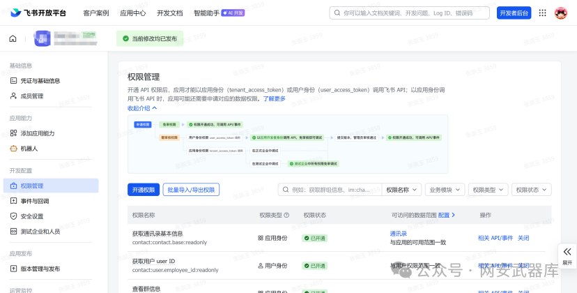 第2步:配置应用权限,并发布应用