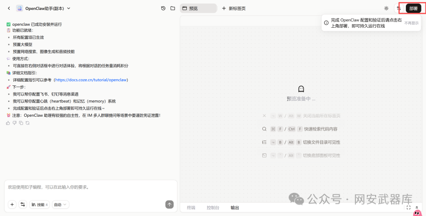 扣子平台一键安装OpenClaw