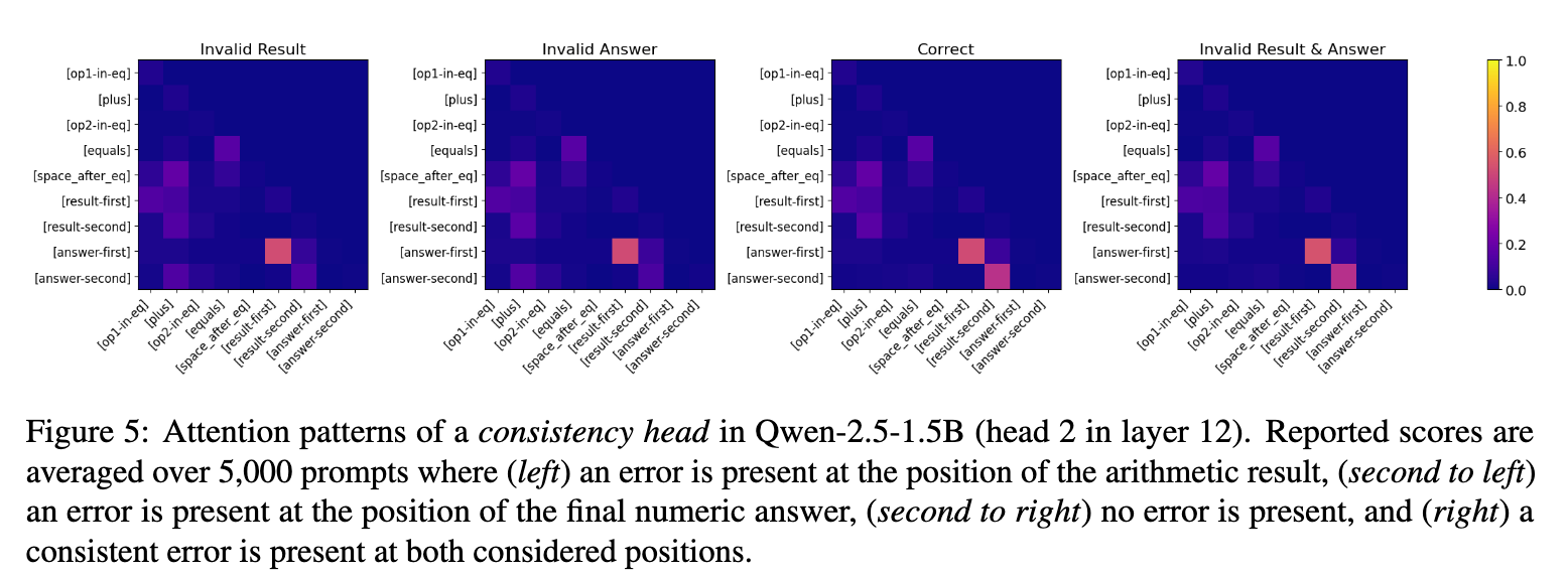 论文中提到了一个关键概念:一致性头(Consistency Heads)。这些位于中低层的注意力头(Attention Heads),它们不关心数学逻辑,只关心表面的一致性(Surface-level Alignment)。