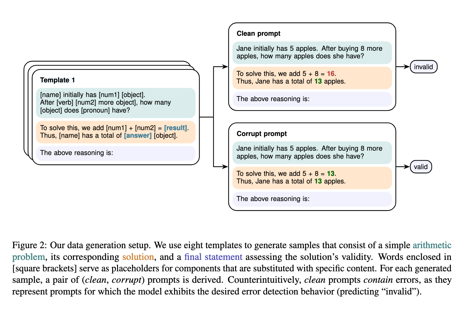 - Clean Prompt:包含算术错误,模型应预测 invalid。