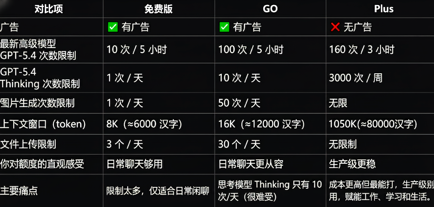 ChatGPT 免费版是“体验 AI”,而 Plus 是“用 AI 干活”。