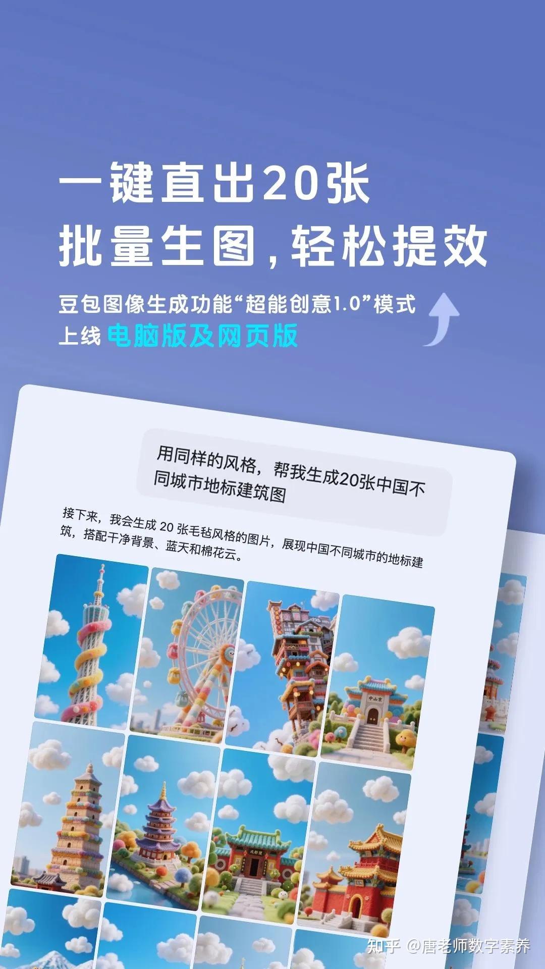 最近,豆包电脑版和网页版“图像生成”功能推出“超能创意1.0”模式,一次最多生成20张差异化图像。