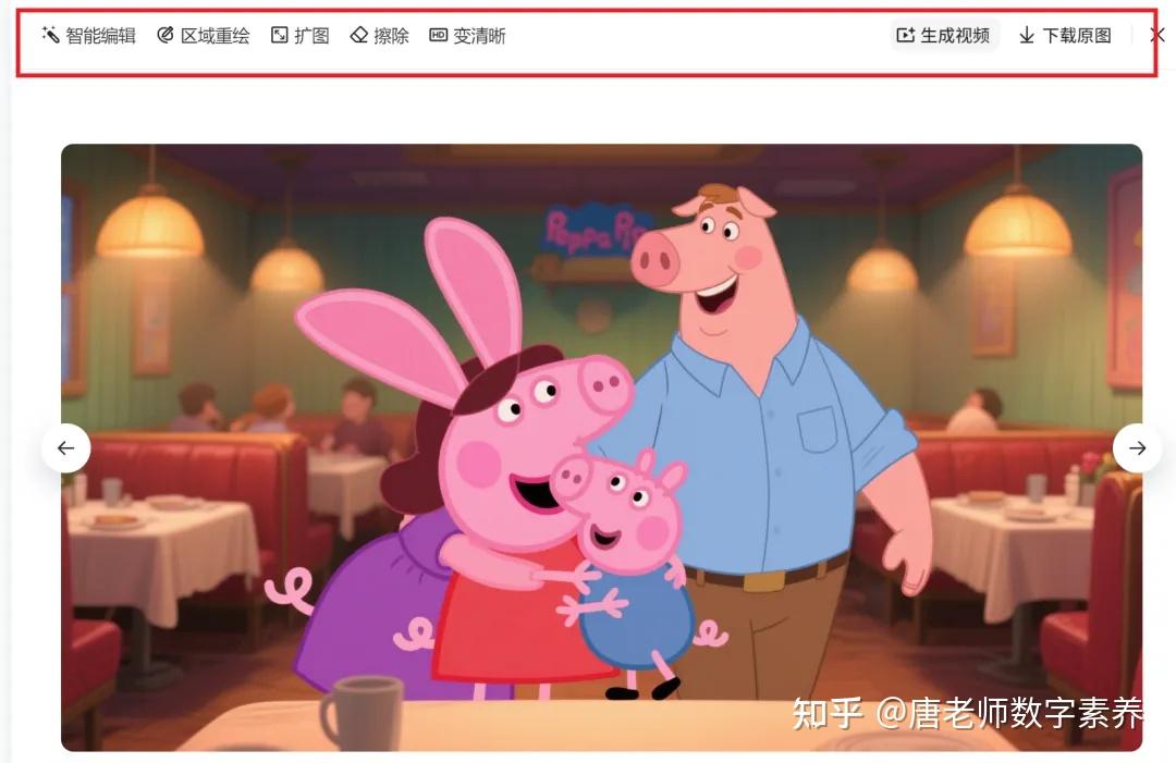 点击图像生成,输入提示词(今天是母亲节,帮我画20张连环画,小猪佩奇给猪妈妈过母亲节的故事,要生动形象准确,人物都是动画片《小猪佩奇》中的),选择比例大小(根据你实际情况来)
