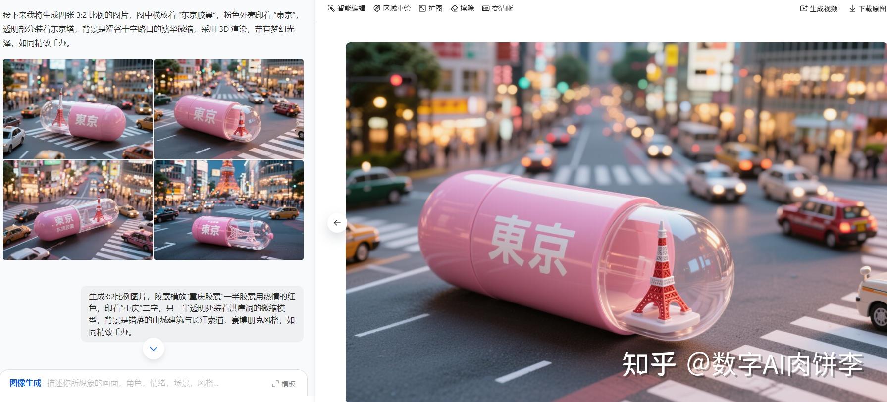 再比如 “东京胶囊”,粉色外壳印着“東京”,透明部分装着东京塔,背景是涩谷十字路口的繁华微缩,3D梦幻感绝了!