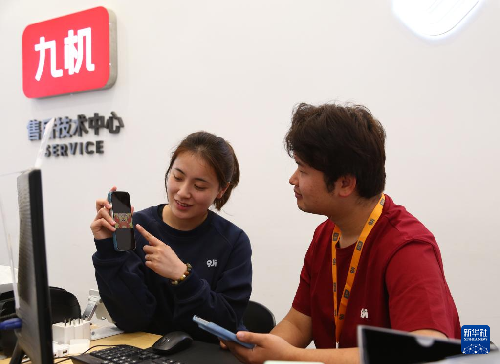 3月11日,在云南省腾冲市一手机专卖店内,工作人员在和同伴交流开源AI智能体“龙虾”的操作体验。
