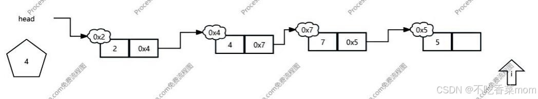 4.如果在中间位置插入,先找出目标位置的节点i以及目标位置前一个节点pre,i指向的节点成为新节点的下一个节点 node->next=i,新节点成为pre的后一个节点 pre->next=node
