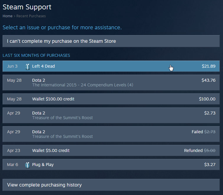 对于任意游戏时间不超过 2 小时、购买时间不早于 14 天前的游戏,在通过help.steampowered.com 提出退款申请后,Valve 都会进行退款。就算不符合以上退款条件,也可以提交退款申请,Steam 客服会根据情况进行审核。